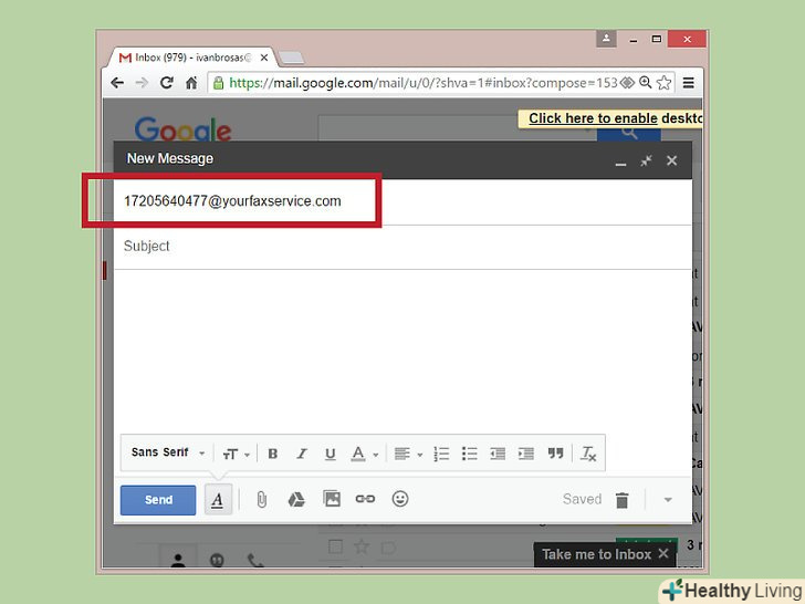 Відкрийте форму створення повідомлення електронної пошти у вашому поштовому акаунті.- У графі адреси одержувача вкажіть номер факсу, на який бажаєте надіслати факсимільне повідомлення, у форматі, зазначеному в інструкціях сервісу факс-Пошти. Наприклад, це може бути десятизначний номер без пробілів і інших символів, що поділяють цифри.