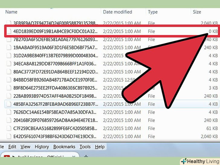 Відкрийте потрібне вам відео і загляньте в «Cache». Там ви побачите, що тільки що був створений новий файл, що містить 0 Кбайт. Скопіюйте цей файл і почекайте, поки Відео повністю завантажиться.