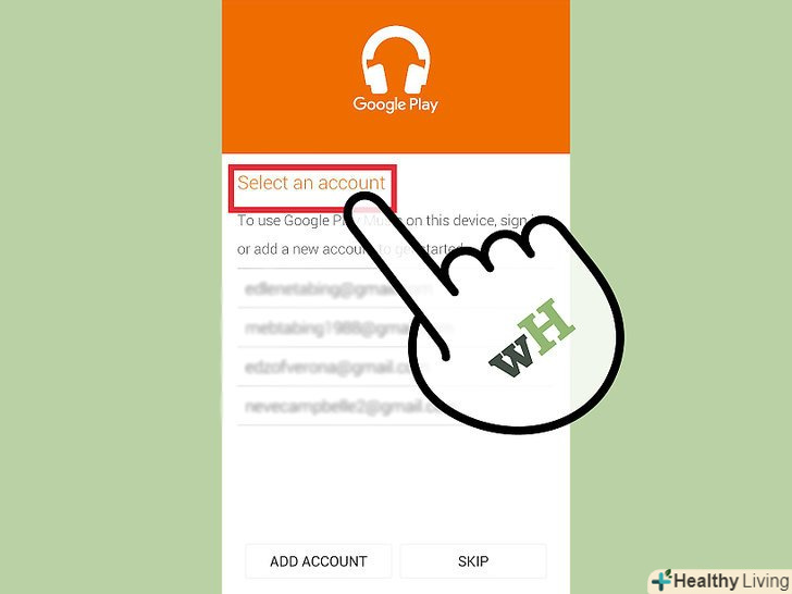Виберіть обліковий запис Google, який ви бажаєте використовувати для доступу до Google Music, або виберіть “Додати обліковий запис“, щоб додати новий обліковий запис.