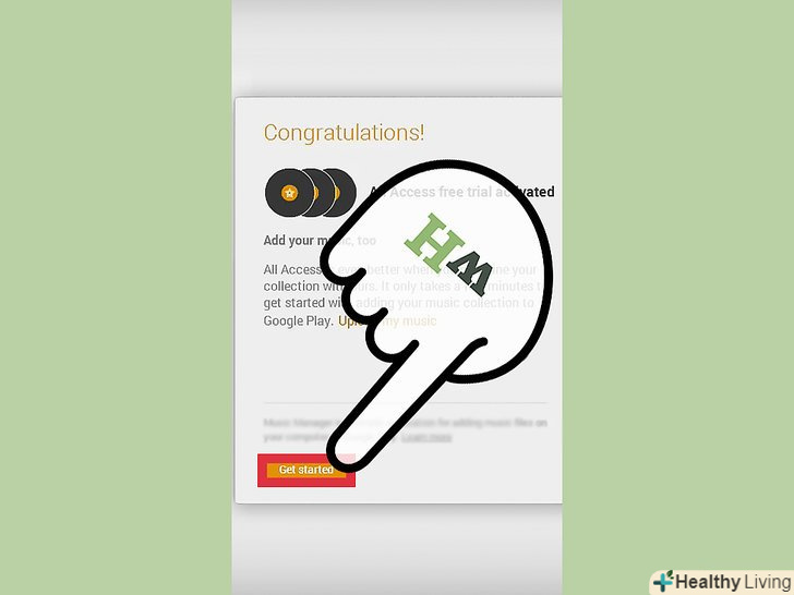 Дотримуйтесь підказок на екрані для завершення налаштування Google Play Music. після завершення налаштування ваш пристрій буде авторизовано для використання Google Play Music. [1]