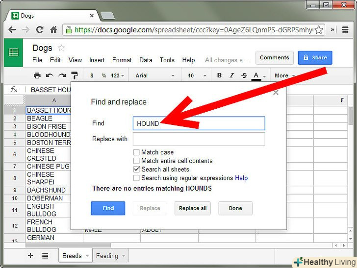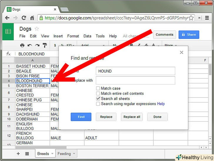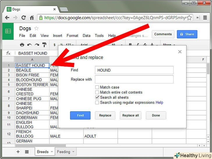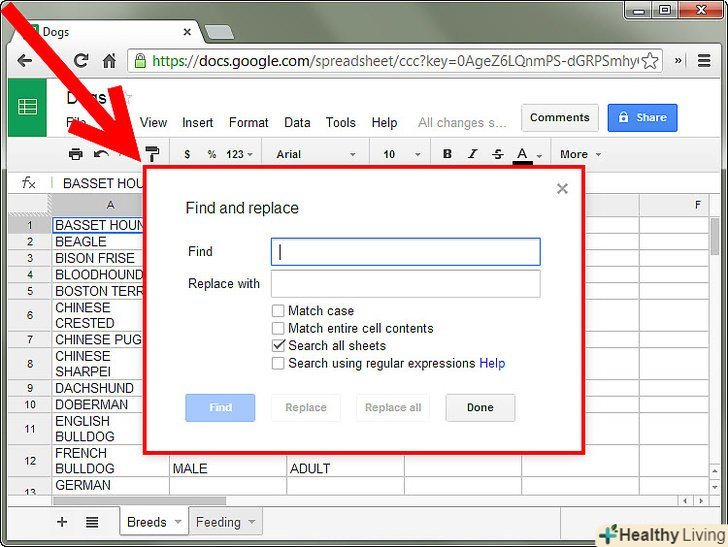 Відкрийте вкладку з необхідною інформацією для пошуку.- Відкрийте " знайти та замінити».існує два способи, як це зробити: