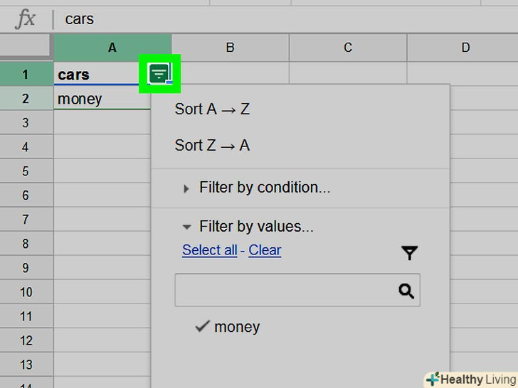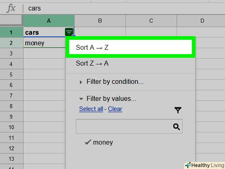 7. Натисніть наСортувати А → Я, щоб перемістити всі порожні комірки вниз.