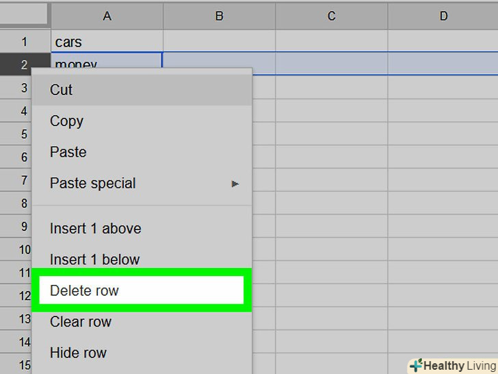 3. Натисніть на номер рядка правою кнопкою миші. рядки пронумеровані в сірому стовпці зліва.