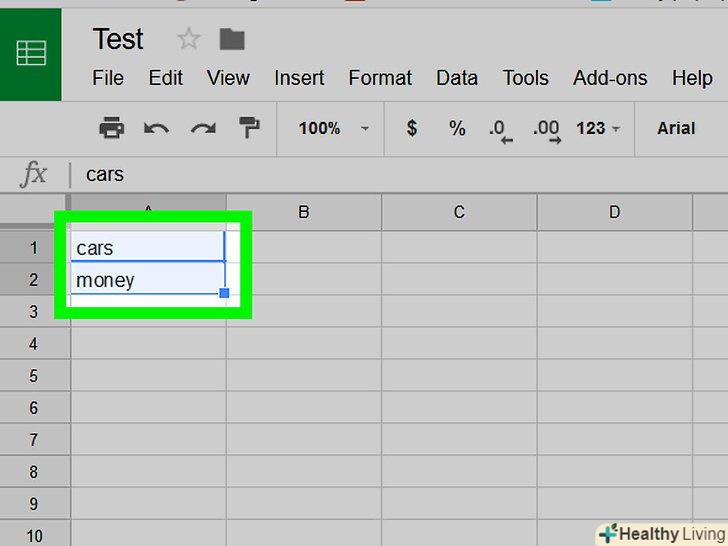 6. Натисніть на іконку у вигляді зеленого трикутника у верхній лівій комірці.