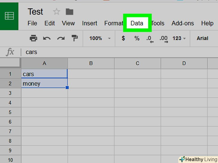 4. Перейдіть на вкладкуДані. вона розташована на панелі меню вгорі вікна.