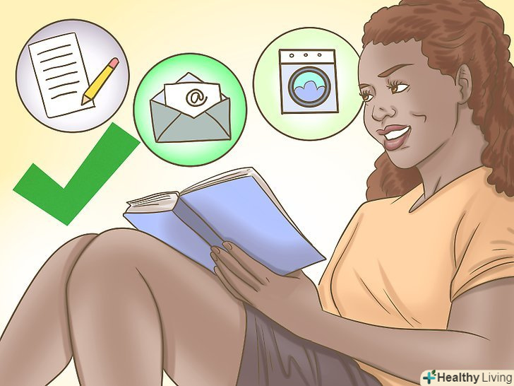 Завершіть всі неприємні завдання заздалегідь, щоб розум міг зосередитися на читанні. дозволяючи розуму блукати або витати в хмарах під час читання, ви не зможете вникнути в текст і з більшою ймовірністю здастеся. Відкиньте всі думки про невиконані справи по дому або речі, які ви воліли б робити замість читання, і зосередьтеся на книзі.[1]- Якщо вам потрібно закінчити домашнє завдання, відповісти на електронну пошту або випрати білизну, Виконайте ці завдання, перш ніж сісти і зосередитися на книзі.