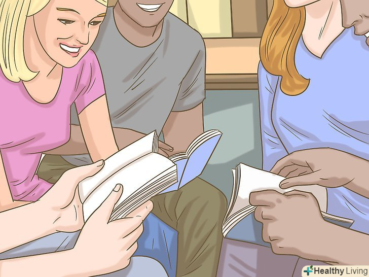 Вступите в книжковий клуб, щоб зарядитися мотивацією.Членство в клубі спонукатиме вас читати частіше, щоб не відставати від програми. Це відмінна можливість приєднатися до спільноти, яка буде спонукати вас до читання; до того ж так ви зможете обговорювати книги з іншими людьми.[4]- Перегляньте газети, оголошення або соціальні мережі, щоб дізнатися, чи є неподалік від вас Книжковий клуб.