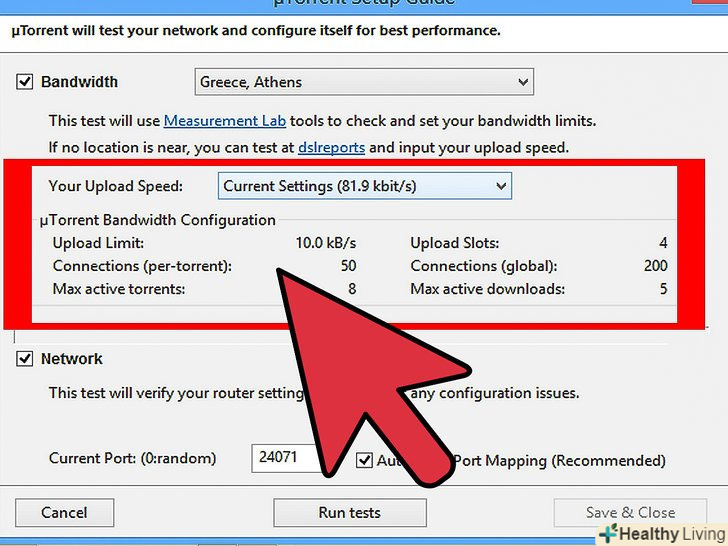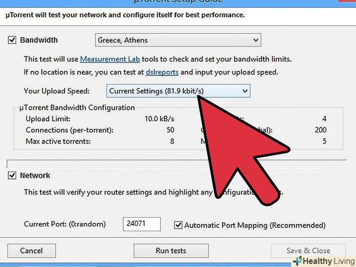 Прискорте μTorrent, встановивши переадресацію портів. ви можете включити uPnP (Universal Plug-N-Play) в клієнті uTorrent і на роутері, і він буде автоматично запускати переадресацію при кожному запуску uTorrent.