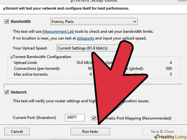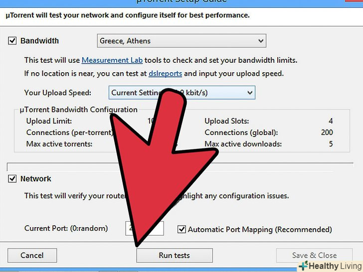 Запустіть свій недавно завантажений клієнт і зробіть тест швидкості. зайдіть в Налаштування → Помічник Налаштування → Тестувати . Зверніть увагу на свою швидкість.