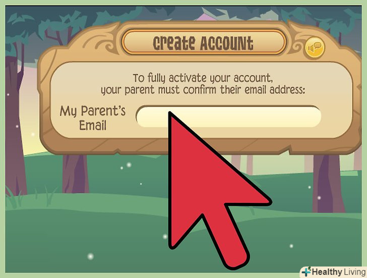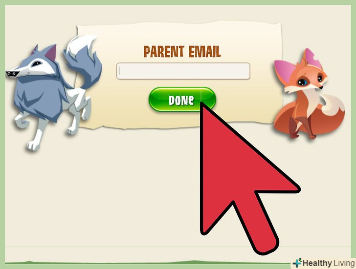 Вкажіть адресу електронної пошти своїх батьків. щоб закінчити створення облікового запису, необхідно вказати в грі адресу електронної пошти своїх батьків або опікуна. Це робиться з тією метою, щоб ваші батьки могли активувати для вас різні ігрові функції, а співробітники Animal Jam-зв'язатися з ними при необхідності.- Якщо вас коли-небудь забанять або відключать від гри, Animal Jam повідомить ваших батьків або опікуна, використовуючи адресу, яка була вказана при створенні аккаунта. [2]