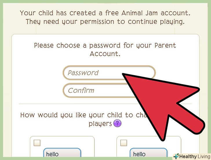 Створіть пароль. після того як ви натиснете на посилання в листі від Animal Jam, вас перенаправлять на сторінку, де ви зможете створити пароль для батьківського аккаунта. Надалі цей пароль дозволить вам отримати доступ до батьківського контролю.