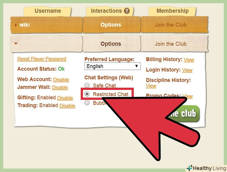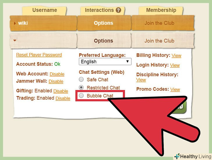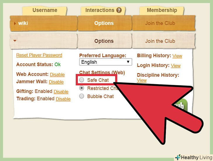 Змініть параметри чату. якщо увійти під батьківським аккаунтом, ви зможете змінити деякі параметри облікового запису в Animal Jam. У розділі «Username» (Ім'я користувача) виберіть аккаунт, настройки якого хочете змінити. У вкладці " Interactions "(взаємодії) Ви зможете змінити чат за замовчуванням, вибравши один з доступних варіантів:» Bubble Chat «(списковий чат) або» Safe Chat " (безпечний чат). [7]- Ви також можете активувати платну підписку. Вона коштує 450 рублів за один місяць членства, 1900 рублів за шість місяців членства або 3700 рублів за рік членства.