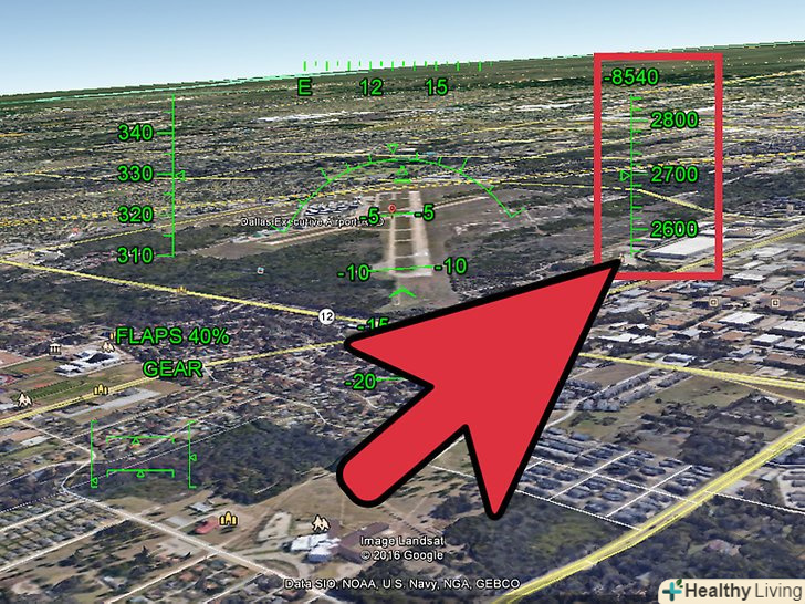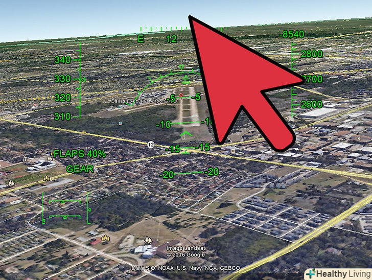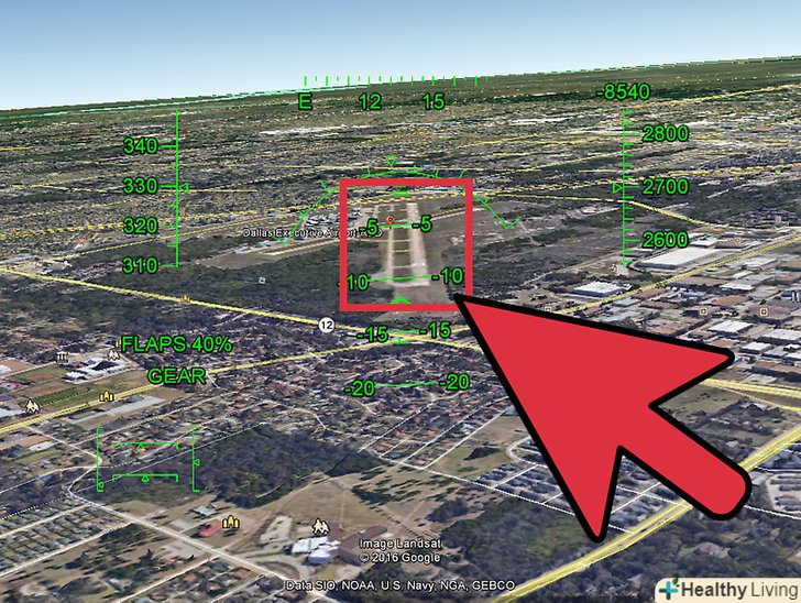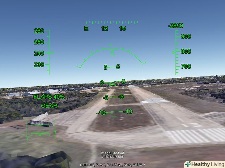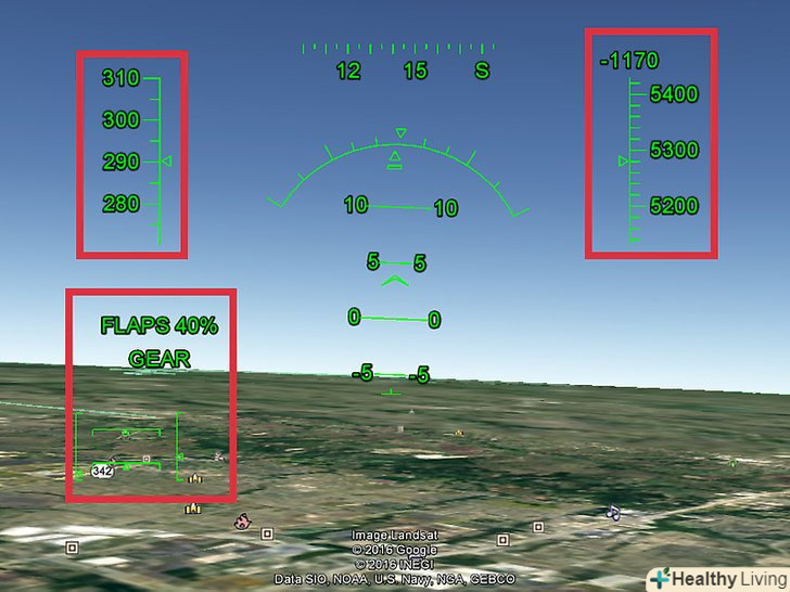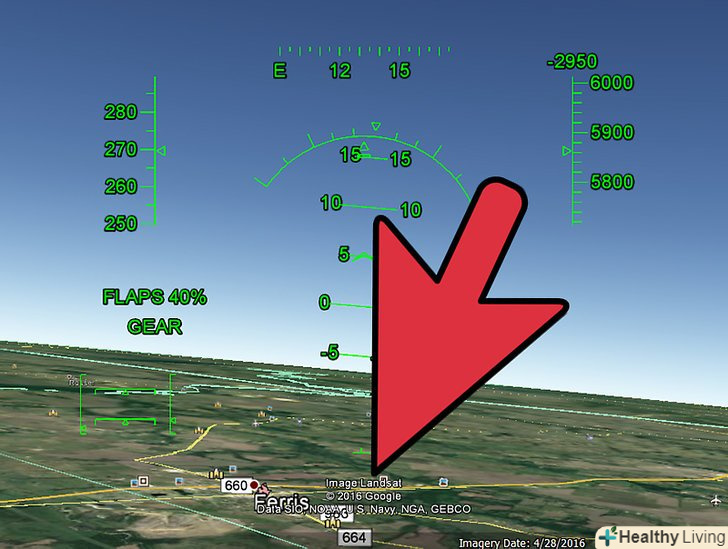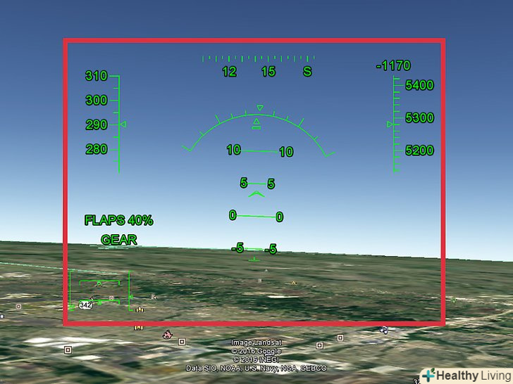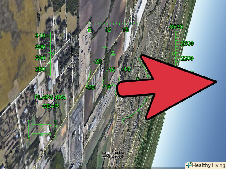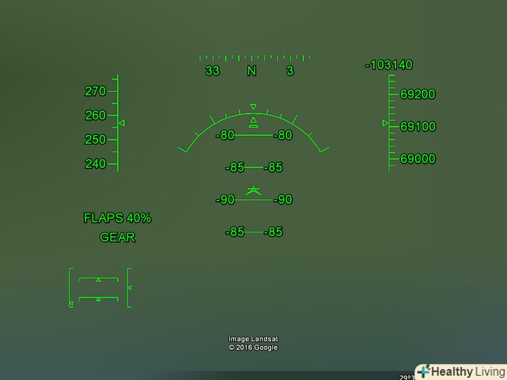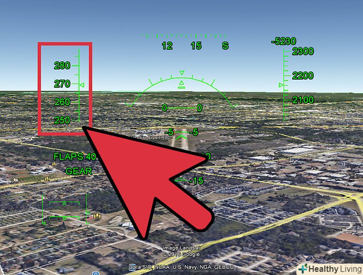 Летіть у напрямку до аеропорту, в якому ви хочете приземлитися.Збільште розгін до максимуму. Відкрийте закрилки і шасі. Ви повинні летіти на швидкості близько 650 вузлів.