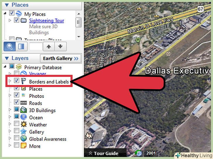 Відкрийте симулятор польотів.відкрийте випадаючу вкладку Інструменти у верхній панелі інструментів Google Earth.- Якщо у вас встановлена старіша версія програми, ніж 4.3, запустіть симулятор польотів за допомогою комбінації клавіш + Alt+A, Control + A або Command + Option + A, потім натиснувши Enter. того, як дана опція була активована один раз, її значок буде постійно висвічуватися в панелі інструментів.
