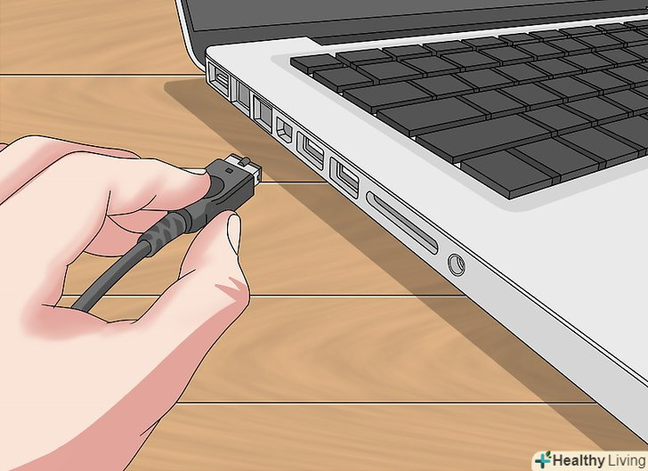 Другий кінець кабелю підключіть до комп'ютера. знайдіть Роз'єм Ethernet на своєму комп'ютері та вставте кабель. Зазвичай гніздо знаходиться на зворотному боці корпусу разом з іншими роз'ємами.- Якщо в комп'ютері немає роз'єму Ethernet, то спочатку потрібно підключити до нього адаптер, після чого до адаптера слід підключити кабель Ethernet.
