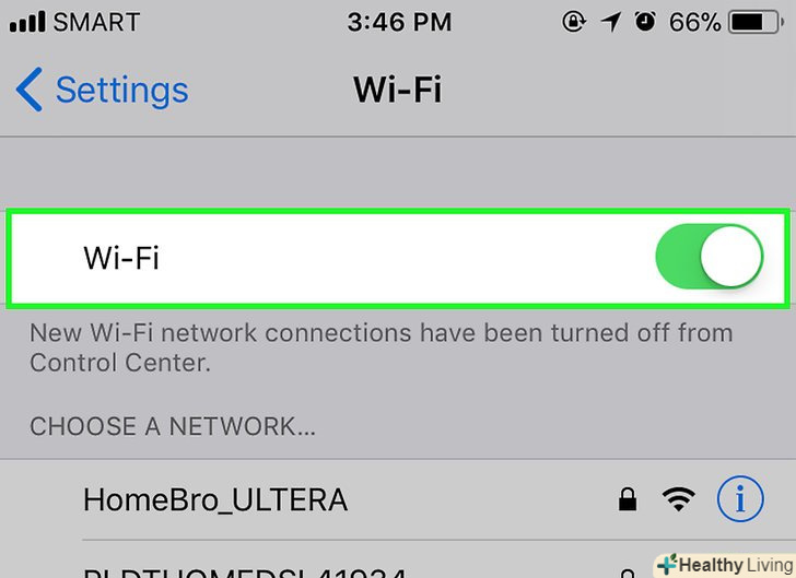 Переконайтеся, що на вашому пристрої включено підключення по Wi-Fi. у будь-якому пристрої можна відключити Wi-Fi. Деякі гаджети оснащуються фізичним перемикачем, а всі інші пристрої мають повзунок включення Wi-Fi в програмних Налаштуваннях. Спочатку потрібно переконатися в тому, що на вашому комп'ютері включений адаптер Wi-Fi.