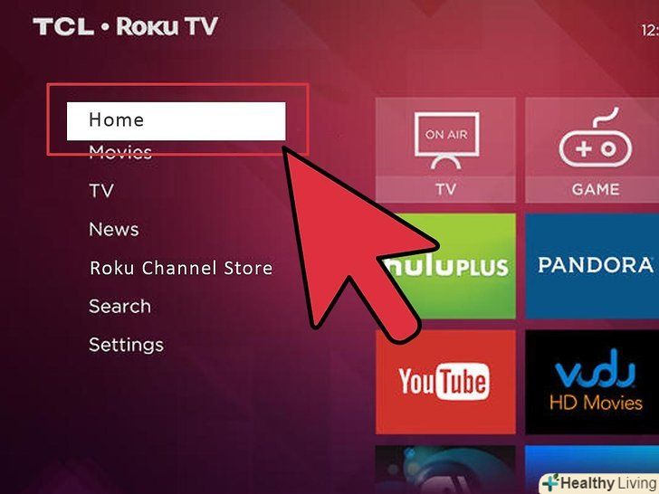 Перейдіть на головний екран Roku. якщо до телевізора підключено потокове пристрій Roku, використовуйте його для потокової передачі відео з Netflix. Коли roku увімкнеться, ви перейдете на головний екран. [8]