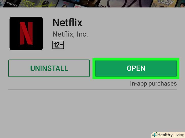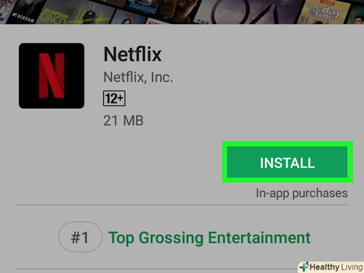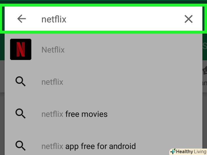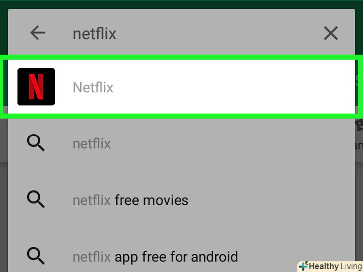 Запустіть додаток Play Маркет (Android) або App Store (iOS). щоб користуватися послугами Netflix, спочатку встановіть додаток Netflix на мобільному пристрої. Якщо Ви реєструєтеся вперше, Ви отримаєте безкоштовну пробну підписку на один місяць. [5]- Незважаючи на безкоштовну пробну підписку, все одно доведеться вказати спосіб оплати, наприклад, банківською карткою, PayPal або передплаченою карткою Netflix.