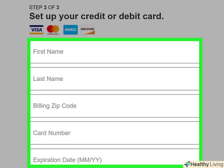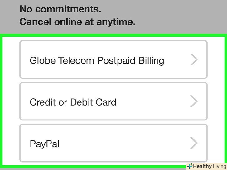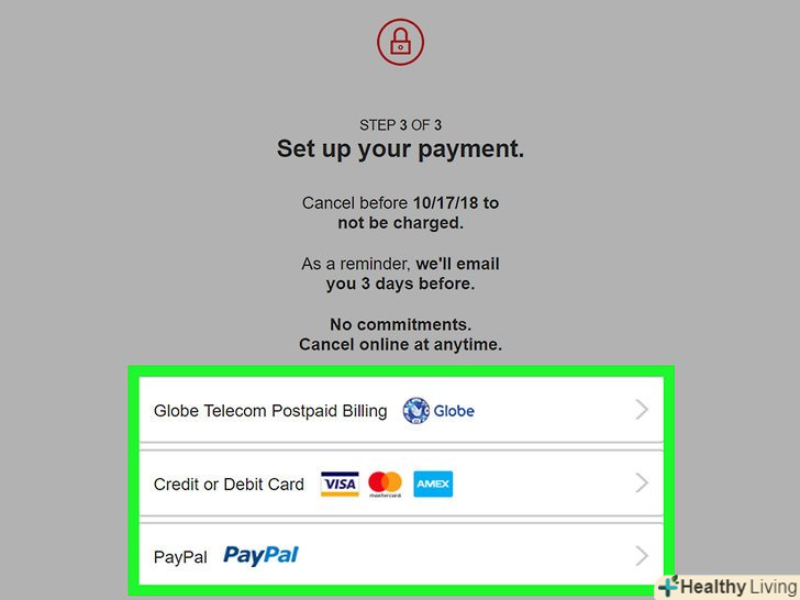 Виберіть спосіб оплати. на екрані з'являться доступні способи.- Netflix приймає до оплати банківські картки Visa, Mastercard, Amex, Discover. [6]
