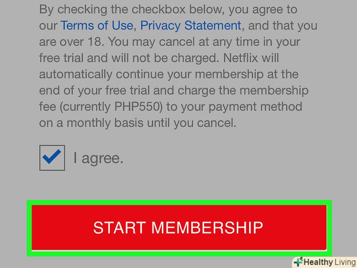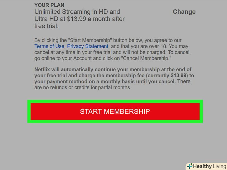 Завершіть створення облікового запису. для цього натисніть " Start Membership "(підписатися). Тепер можна приступити до перегляду і трансляції відео з будь-якого підтримуваного пристрою. [4]