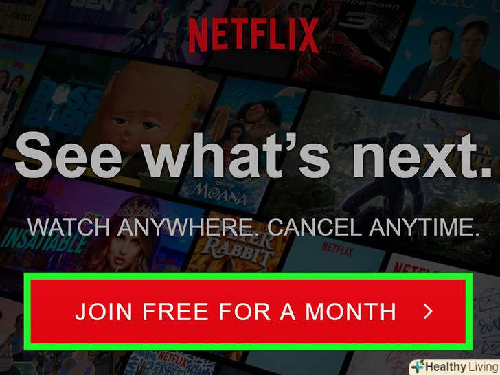 Відкрийте сайтWww.netflix.com у веб-браузері. незалежно від того, який пристрій Ви використовуєте, створити обліковий запис Netflix можна на сайті Netflix.com. якщо Ви реєструєтеся вперше, Ви отримаєте безкоштовну пробну підписку на один місяць. [1]- Незважаючи на безкоштовну пробну підписку, все одно доведеться вказати спосіб оплати, наприклад, банківською картою, PayPal або передплаченою карткою Netflix.