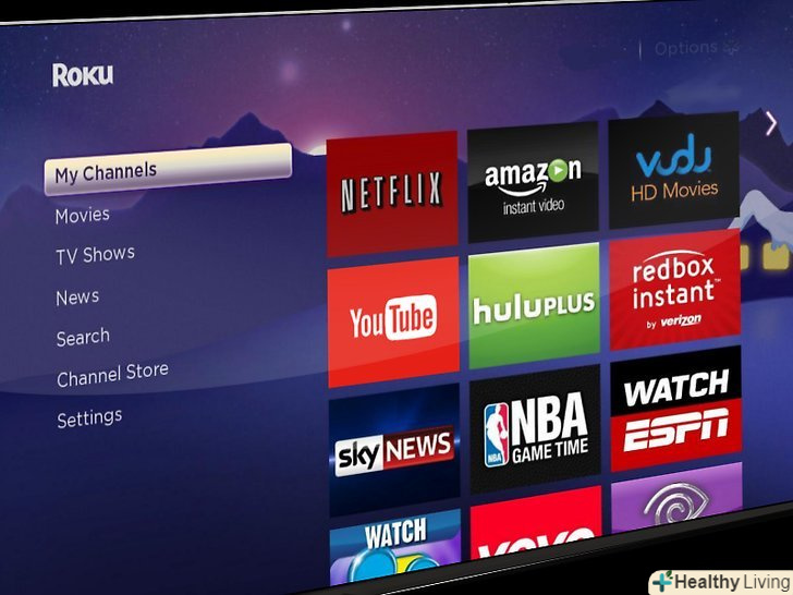 Виберіть «Netflix» на головному екрані. якщо ви не використовуєте Netflix, виконайте наступне: [9]- У меню зліва виберіть «Streaming Channels» (потокові канали) або «Channel Store» (Магазин каналів), якщо у вас Roku 1.