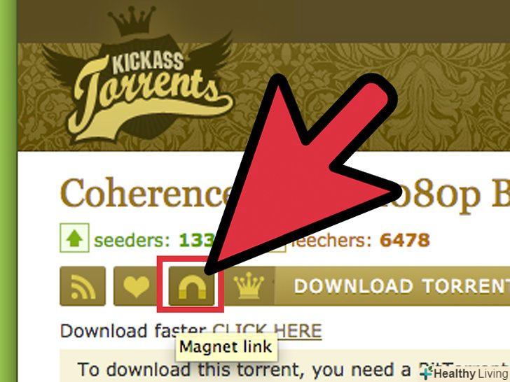 Завантажте магнітне посилання (якщо воно є). магнітне посилання-це текстовий рядок, тоді як торрент – це невеликий файл. Магнітні посилання відповідають скачуваному файлу на основі унікального ідентифікатора, завдяки чому файл можна завантажити без використання трекерів. [1]