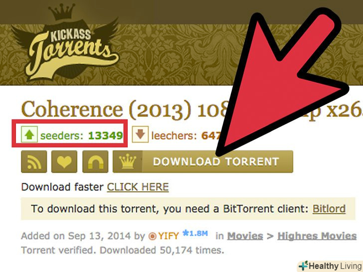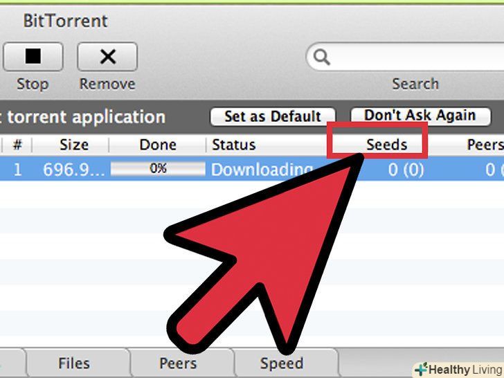 Скачайте роздаваний торрент. висока швидкість скачування файлу (фільму, альбому, гри) залежить від великої кількості Сідов (це користувачі, які роздають потрібний вам файл), малої кількості личеров (це користувачі, які скачують потрібний вам файл) і високошвидкісного підключення до інтернету (у вас і у Сідов).- Ви можете відсортувати результати пошуку торрентів за кількістю сидів. Вибирайте торренти з найбільшим числом Сідов. Це не тільки підвищить швидкість скачування файлу, але і гарантує відсутність шкідливих кодів в цьому файлі.