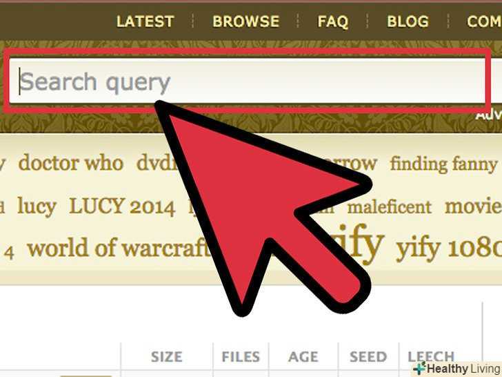 Знайдіть потрібний вам торрент. на більшості публічних трекерів можна знайти торренти старих і нових шоу, фільмів, музичних альбомів та ігор.- При пошуку торрентів використовуйте популярні скорочення. Наприклад ,якщо вам потрібен другий епізод з третього сезону шоу, в пошуковому рядку введітьlt;назву шоу gt; s03e02.