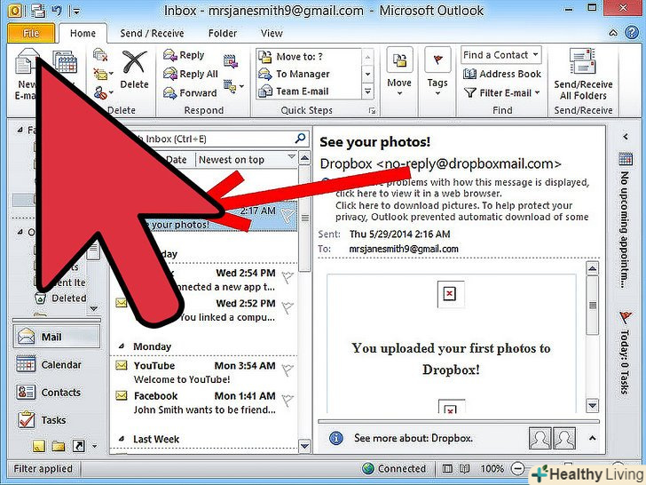 Запустіть Outlook, потім перейдіть в папку Inbox (Вхідні).
