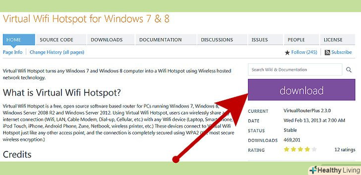 Завантажте програму для створення точки доступу в мережі. Virtual Wifi Hotspot цілком згодиться, благо що вона безкоштовна і працює на Windows XP, Vista, 7, 8 і 2008.
