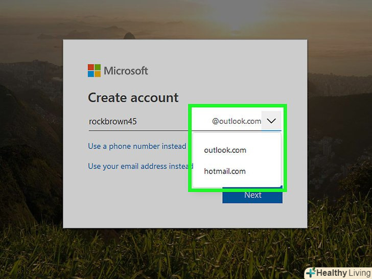Натисніть на випадаюче меню поруч з ім'ям користувача і виберіть тип поштової адреси. можете вибрати "@outlook.com, ""@hotmail.com, " і ще один.