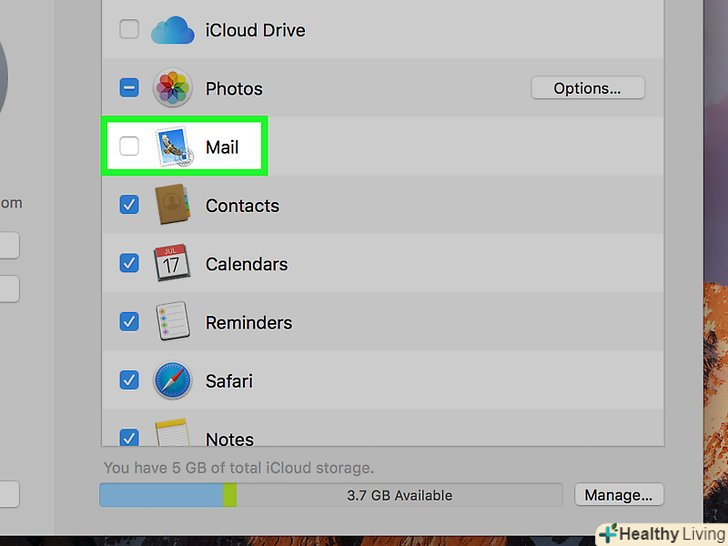 Перевірте, чи встановлена пташка біля рядка "Mail" (Пошта) в меню iCloud і натисніть "Продовжити".
