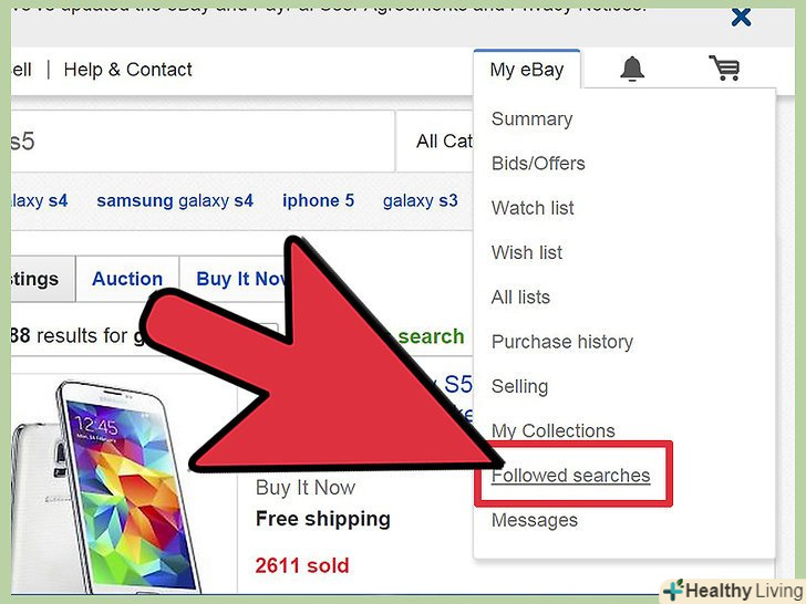 Перегляньте ваші «Saved searches» (збережені пошукові запити). перейдіть на сторінку «My eBay» (мій eBay) і натисніть на посилання «Saved searches» (збережені пошукові запити) в лівій частині екрана.- Ви будете перенаправлені на іншу сторінку, де перераховані всі ваші збережені результати пошуків. Натисніть на назву вашого пошукового запиту, щоб переглянути поточні позиції. Робіть це регулярно, щоб не упустити новинки.