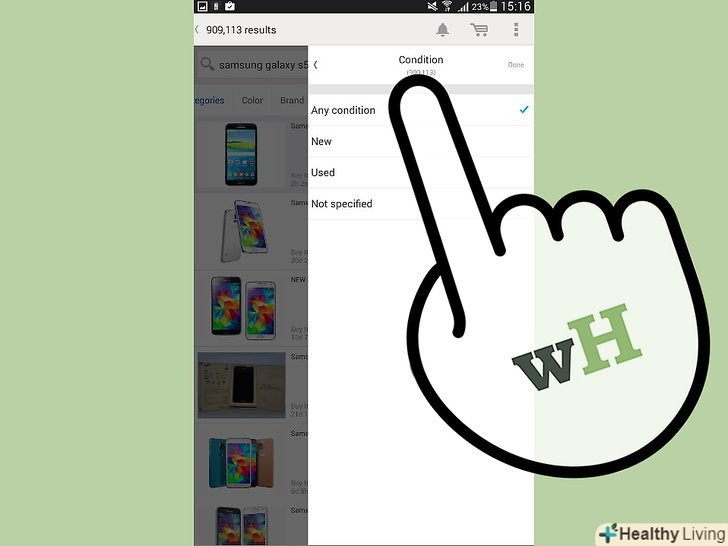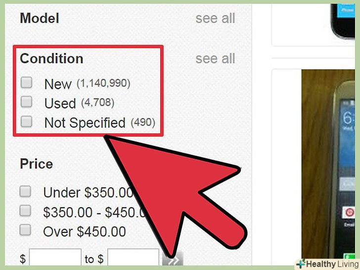 Встановіть необхідний стан товару. Натисніть на опцію «Condition» (стан), щоб вибрати серед «New» (новий), «Used» (Старий), «Not Specified» (не вказано) або «Any» (будь-який).