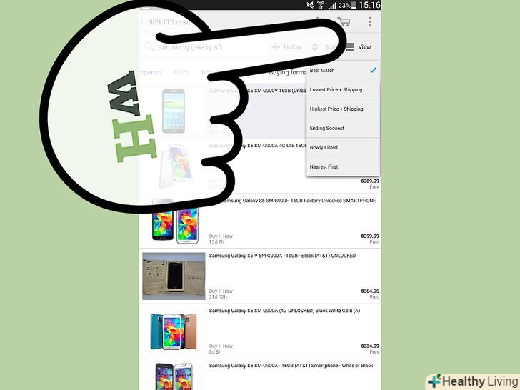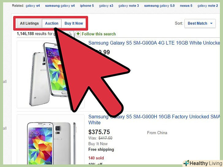 Відсортуйте ваші результати. Натисніть на опцію "sort" (сортувати) і виберіть бажаний порядок, за яким будуть відображені лоти.- Ви можете вибрати один з наступних критеріїв: «Best Match» (найкраще поєднання), «Price+Shipping: Lowest First» (мінімальна сума вартості товару і ціни доставки), «Price+Shipping: Highest First» (максимальна сума вартості товару і ціни доставки), «Price: Highest First» (найвища ціна), «Time: Ending Soonest» (найближчий за часом закінчення аукціон), «Time: Newly Listed» (останні виставлені на продаж лоти), «Distance: Nearest First» (найближче розташування товару), «Number of Bids: Fewest First» (найменшу кількість ставок) і «Number of Bids: Most First "(найбільша кількість ставок).