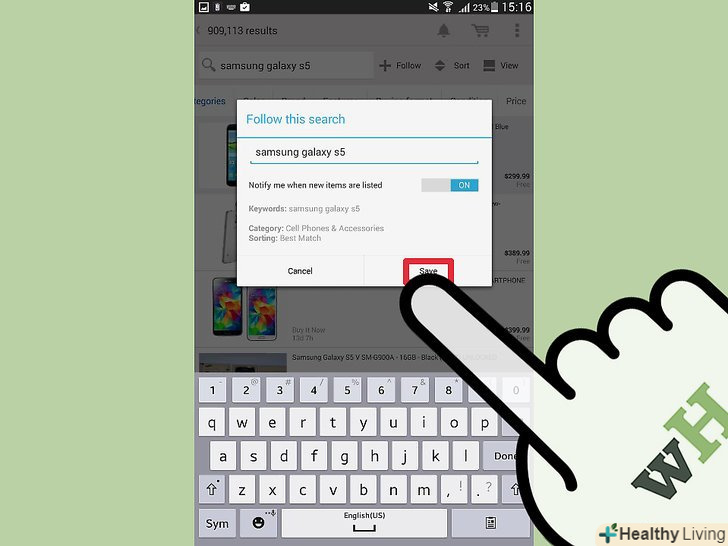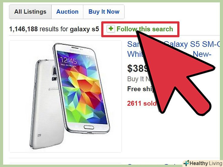 Збережіть ваші параметри пошуку. Прямо біля головної панелі пошуку знаходиться Зірочка в гуртку. Натисніть на неї. З'явиться віконце, де ви зможете дати назву даного пошукового запиту і зберегти його.- Ви також можете вибрати опцію отримання повідомлення на мобільному пристрої, коли знову з'явилися лоти відповідають вашим критеріям пошуку.