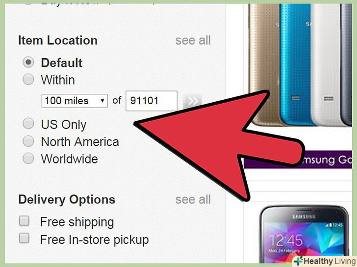 Виберіть місцезнаходження товару. покажіть, що ви шукаєте предмети, які знаходяться тільки у вашій місцевості, в межах вашої країни, регіону або по всьому світу. Якщо ви визначите місце дислокації за межами вашої країни, то будете мати справу з іноземцями. В такому випадку готуйтеся доплатити певну суму за міжнародну пересилку і податки.