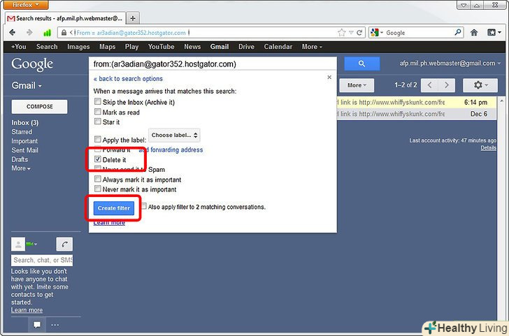 Виберіть «Delete it», поставивши галочку праворуч. тепер Всі листи, отримані з вказаної адреси, автоматично будуть відправлятися в сміттєвий кошик. [1]