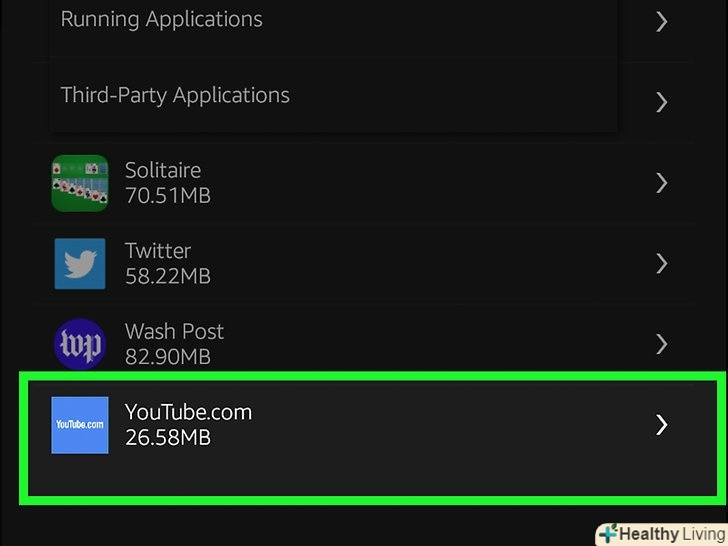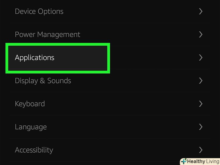 Натисніть " More "(ще), щоб відкрити додаткові опції, а потім торкніться "Applications" (Додатки).на екрані відобразиться список всіх програм, встановлених на Kindle Fire HD.