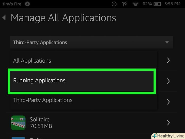 Відкрийте меню " Filter by "(фільтрувати по) у верхній частині екрана.потім виберіть " Running Applications "(запущені програми). З'явиться список додатків, які в даний момент працюють на планшеті.[6]