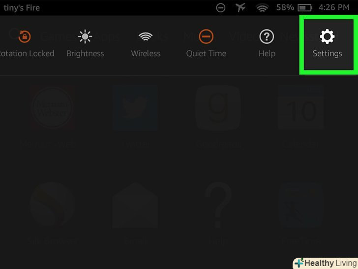 Проведіть пальцем зверху вниз, щоб відкрити меню.також можна натиснути на значок у вигляді шестерінки в правому верхньому куті, щоб відкрити меню.[5]