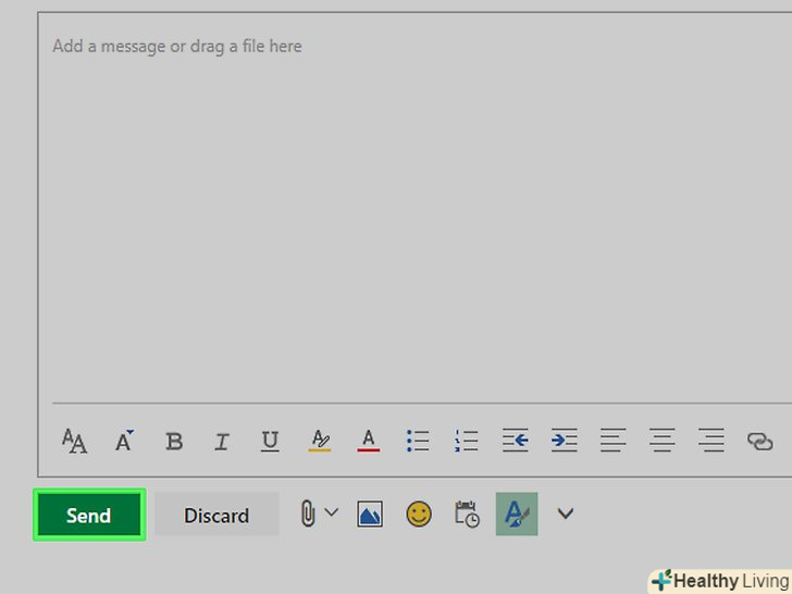 НатиснітьНадіслати.посилання на аудіофайл буде надіслано одержувачу, який натисне " відкрити "( під прикріпленим аудіофайлом в електронному листі), перейде на сторінку аудіофайлу, а потім клацне по стрілці у верхньому правому куті сторінки, щоб завантажити файл.- Якщо хочете, введіть нотатку в поле під рядком з адресою електронної пошти, перш ніж натиснути "Відправити".