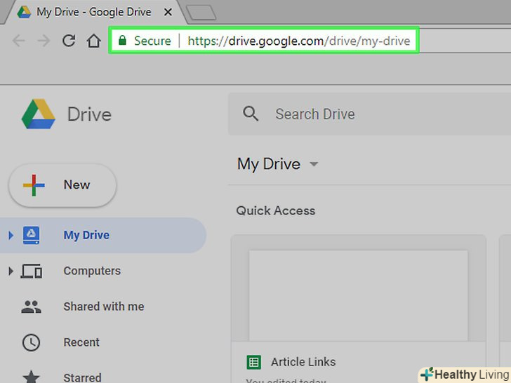 Відкрийте сайт Google Диска. перейдіть на сторінку https://www.drive.google.com/.- Якщо ви ще не ввійшли до свого облікового запису Google, натисніть «Перейти в Google Диск», а потім введіть свою адресу електронної пошти та пароль.