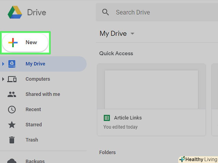 Клацніть поСтворити.ця синя кнопка знаходиться у верхній лівій частині вікна Google Диска.