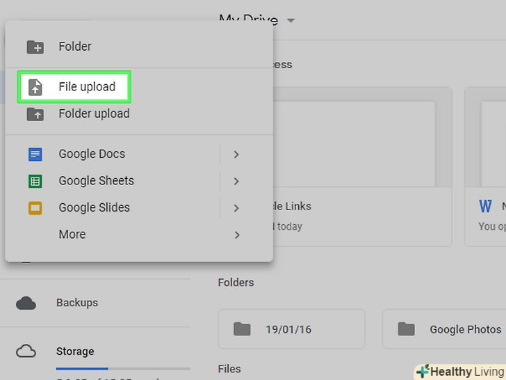 НатиснітьЗавантажити файли.ця опція знаходиться у верхній частині меню "Створити".