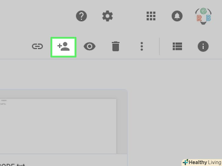 Клацніть по "поділитися". це значок у вигляді силуету і символу » + " у верхній правій частині вікна Google Диска. Відкриється вікно з полем для введення адрес електронної пошти.