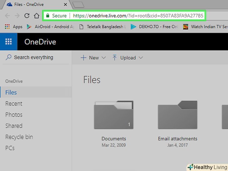 Відкрийте веб-сайт Outlook OneDrive. Перейти на сторінку https://www.onedrive.com/.- Якщо ви ще не авторизувалися, введіть адресу електронної пошти та пароль Outlook.