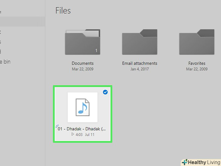 Виберіть аудіофайл і натиснітьВідкрити.можливо, вам доведеться відкрити папку з файлом на лівій панелі вікна.- Також можна просто перетягнути аудіофайл у вікно OneDrive.