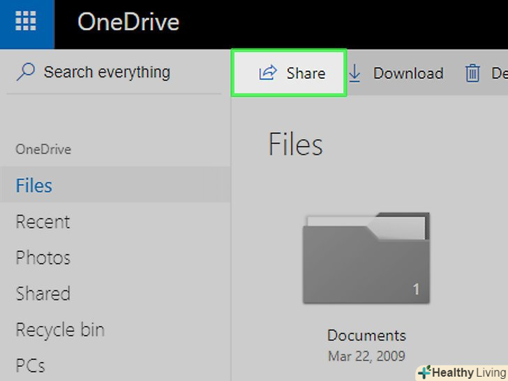 НатиснітьПоділитися.ця опція знаходиться у верхній лівій частині панелі інструментів OneDrive, яка розташована у верхній частині сторінки.